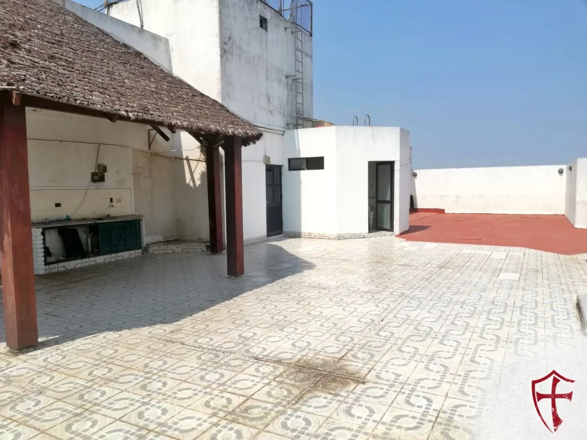 Área social: terraza amplia, cabaña, parrilla