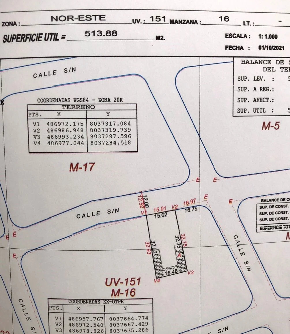 TERRENO vacío de 513.88m2 a 5 cuadras de la Av. LUJAN y a 4 cuadras de la Subalcaldia del Distrito 6.