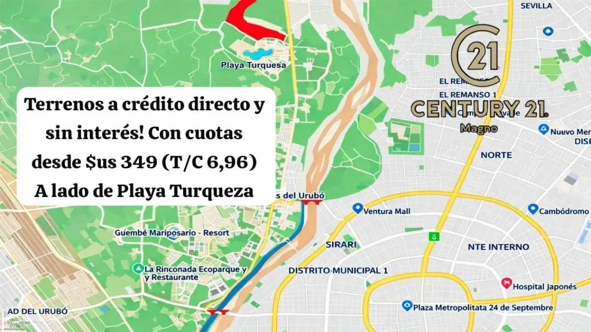 Ubicado a lado de Playa Turquesa, en la zona oeste de Santa Cruz, a tan solo 12 minutos del Puente Foianini.