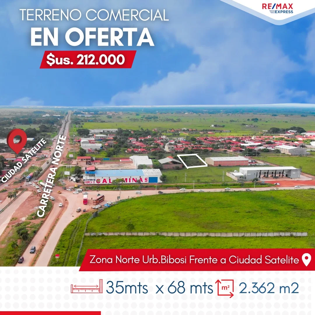 Sup. de terreno 2.362 m2 Zona Norte Sobre Av. Banzer km.17 Frente a satélite, al lado del MONUMENTAL.