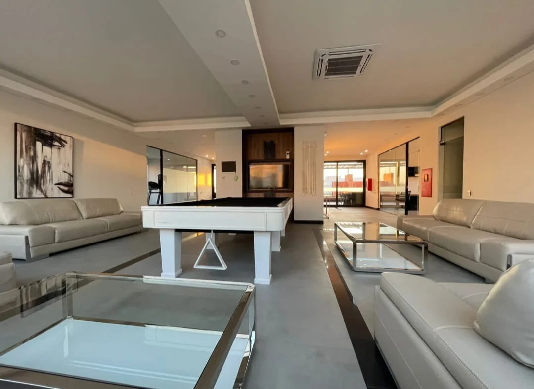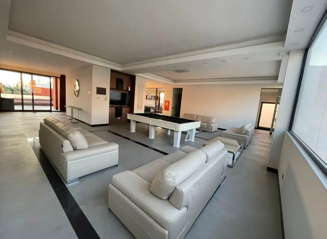 Espectacular área común con piscina, churrasquera, sala de TV, billar y gimnasio.