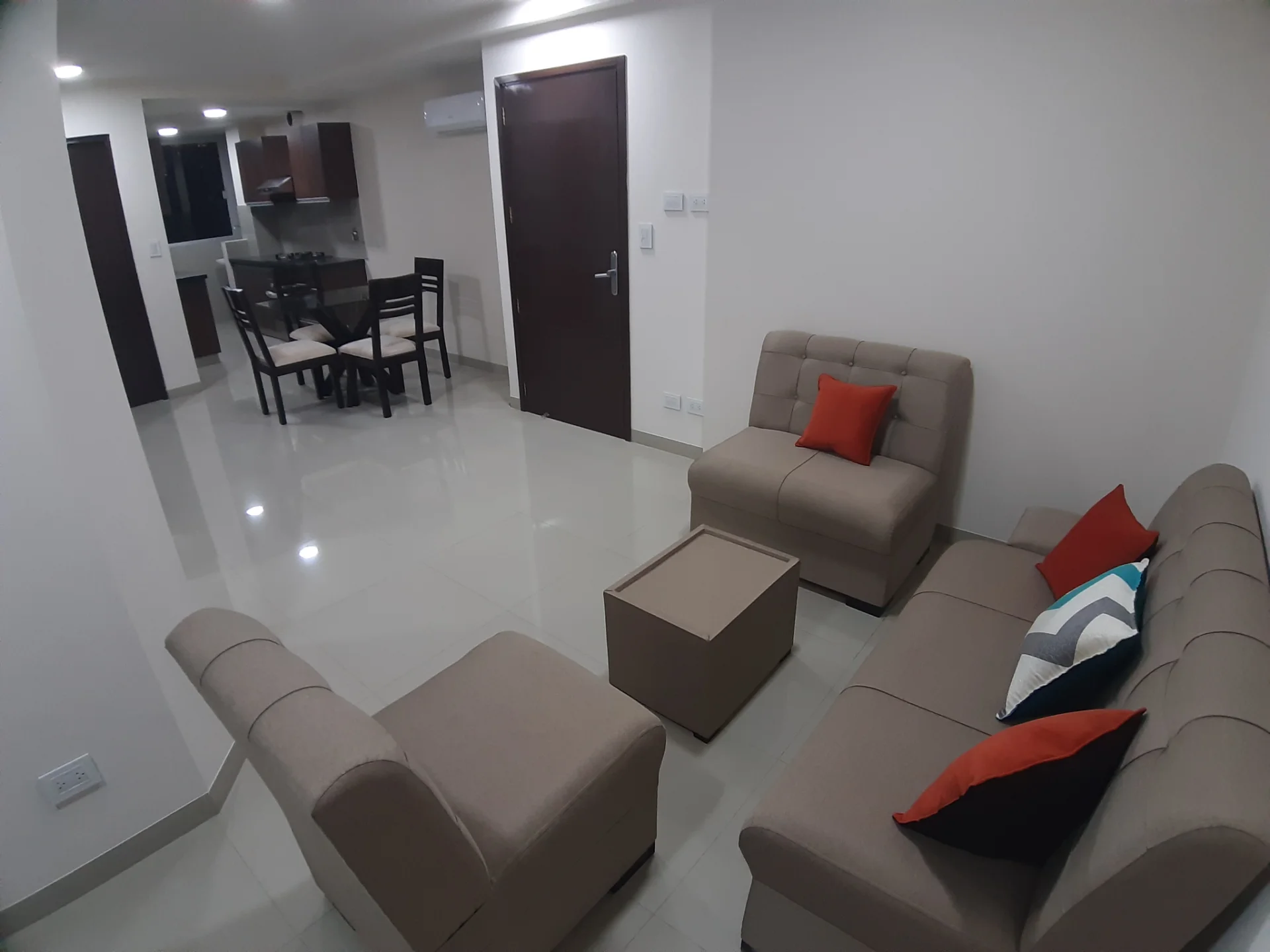 DEPARTAMENTO SEMI EQUIPADO 74 m2. EXCELENTE ACABADO Y MATERIALES con 2 dormitorios, 1 es en suite. 2 baños 1 balcón. 74 m2. BOX DE BAÑOS, MUEBLES DE COCINA ALTOS Y BAJOS y ROPEROS EN LAS HABITACIONES. Expensas Bs 520 incluye agua Solo 2 departamentos por piso. NO comparten paredes. Muy privados y silenciosos.
