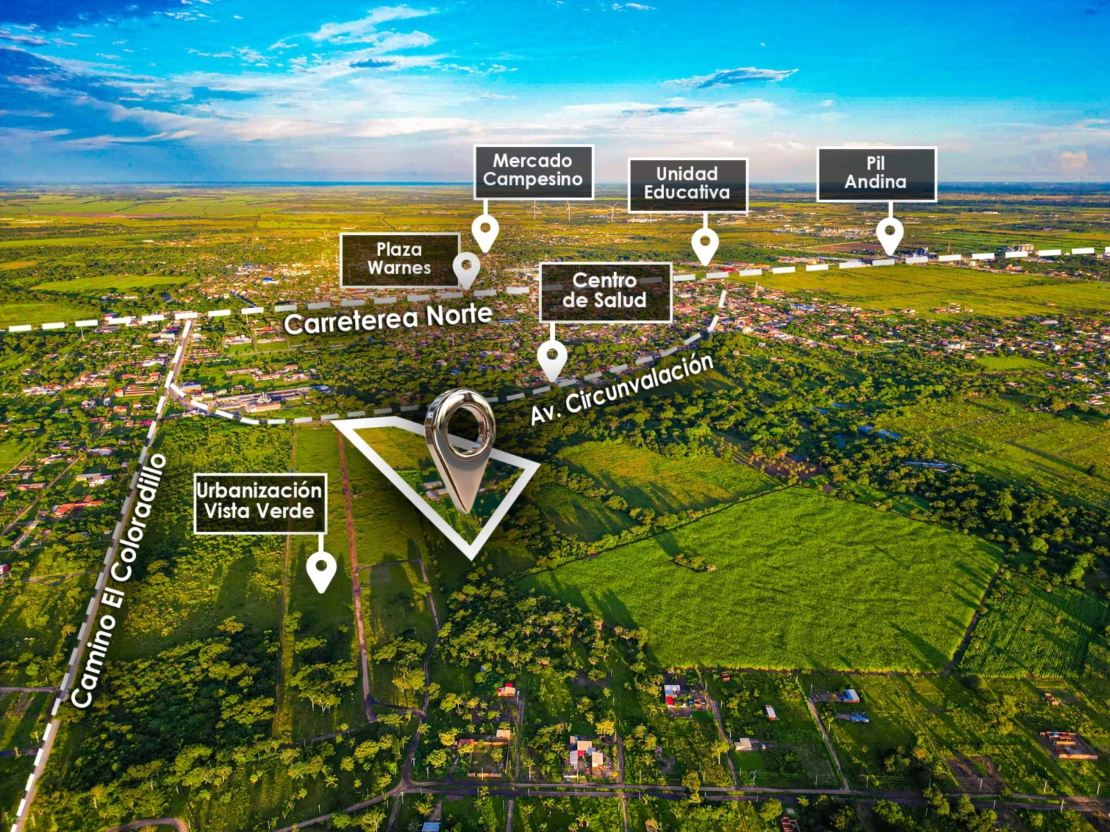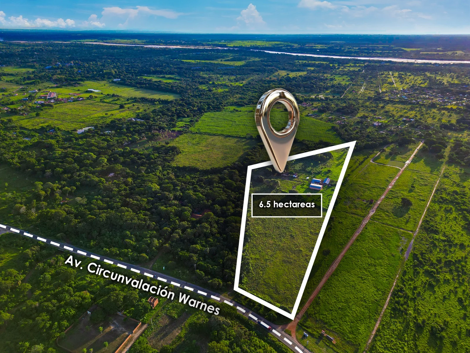 sobre av. 1er anillo. Circunvalación de Warnes. Dentro de la mancha urbana. Rodeado de urbanizaciones. Ideal para urbanizar, parqueo de camiones o hacer galpones.